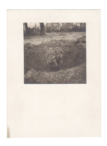 Unser Gardekorps sammelte sich auf dem Truppenübungsplatz Elsenborn vor der belgischen Grenze. Wir waren die Letzten, am anderen Tag begann der Vormarsch. Die Rheinländer unter General Ludendorff hatten bereits die Festung Lüttich erobert. Am 21. und 22.8.1914 hatten wir unsere erste Feindberührung an der Maas bei Anodais. Als Gegner auf dem belgischen Boden erwarteten uns französische Truppen. Der Übergang über die Maas erfolgte plangerecht, die Franzosen zogen sich zurück. Im Kampffeld unseres Abschnittes waren mehrere Kohlenhalden. Auf einer solchen hatte unser II. Zug Stellung bezogen, die Fahrzeuge mit der Reservemannschaft lagen hinter der Halde in Deckung. Als nach Ende des Gefechts die MG-Mannschaften zu ihren Fahrzeugen kamen, erlebten sie eine böse Überraschung. Bei den Fahrzeugen befanden sich nur noch Tote: Pferde und Soldaten. Ein Überfall der belgischen Zivilisten. Alle Toten waren mit Schrotkugeln aus Jagdgewehren erschossen worden. Der Ort wurde durchsucht, wobei eine große Menge an Jagdwaffen und Munition gefunden wurden. Alles wurde vernichtet – Schuldige aber nicht festgestellt. Augenzeugen gab es nicht. Die deutsche Führung versuchte, dieses Geschehen vor dem internationalen Gerichtshof in Haag zur Anklage zu bringen, aber die Kriegsgegner unter Führung von England waren stärker. Ich selbst bin 1916 mit weiteren Teilnehmern unseres Korps vor ausländischen Journalisten zu dieser Handlung belgischer Zivilisten verhört worden.